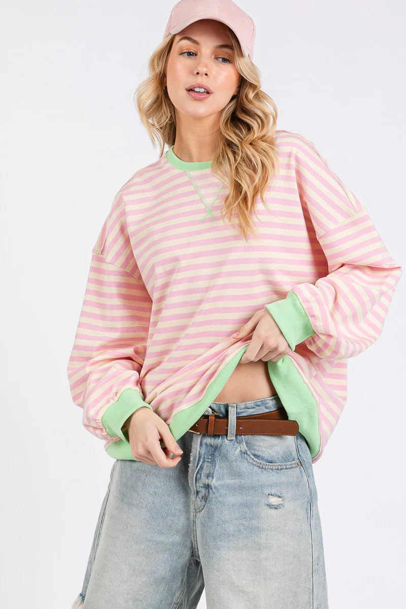 Nyla Striped Sweatshirt in Pink Stripe