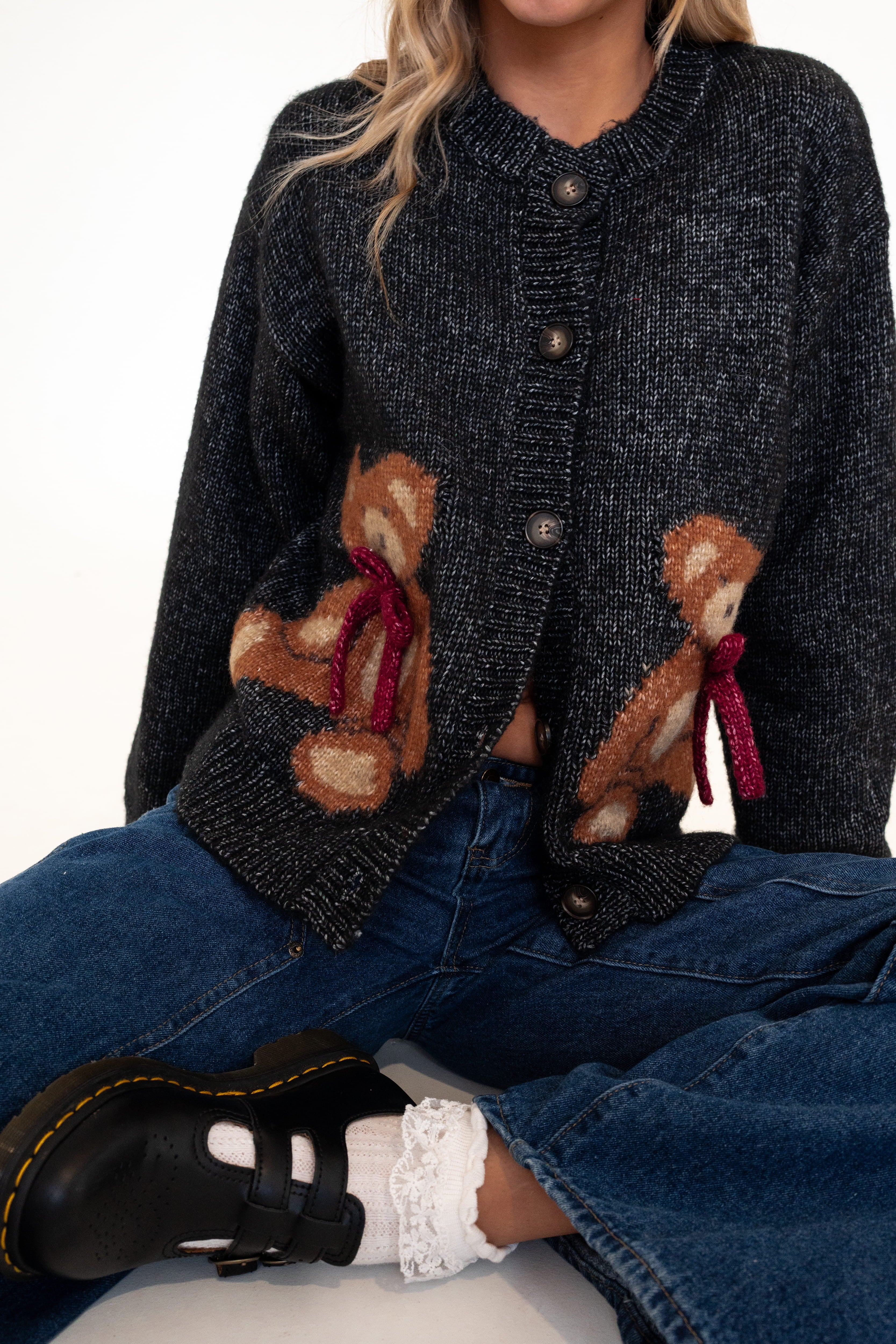 Teddy Bear Cardigan in Black